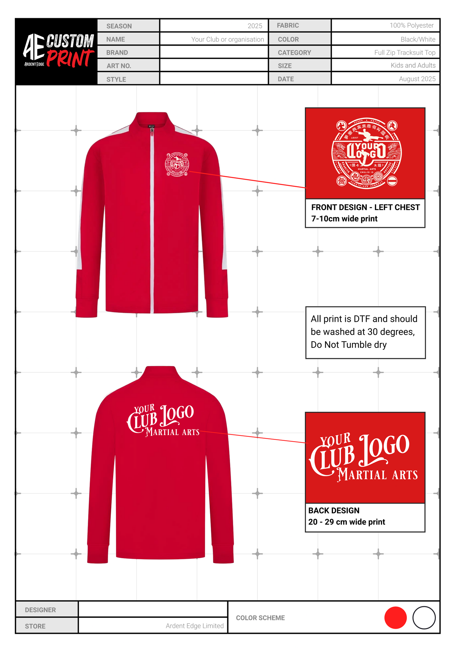 Send your logo/artwork to info@ardentedge.co.uk — we’ll check it’s high enough quality for a crisp print and let you know if anything needs improving.
